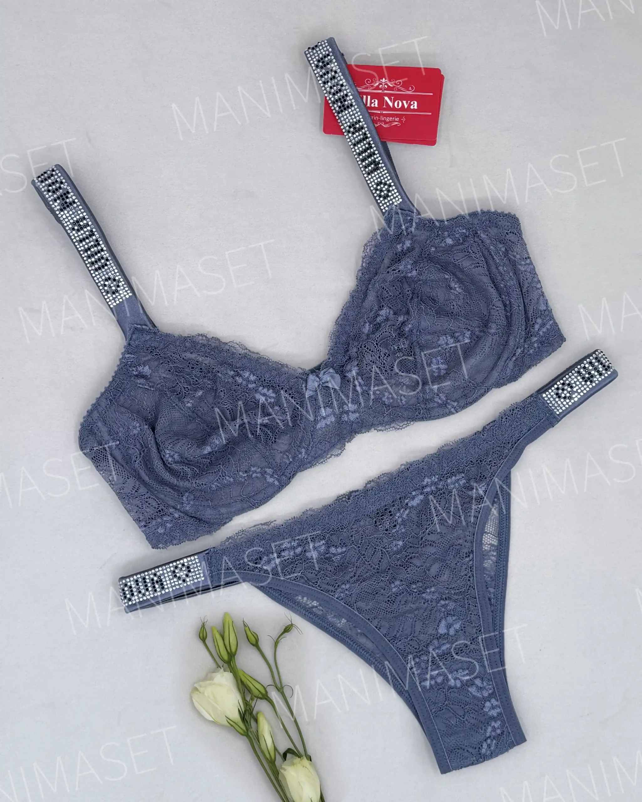 ست گیپور زیر فنردار با بند سرشانه نگین دار