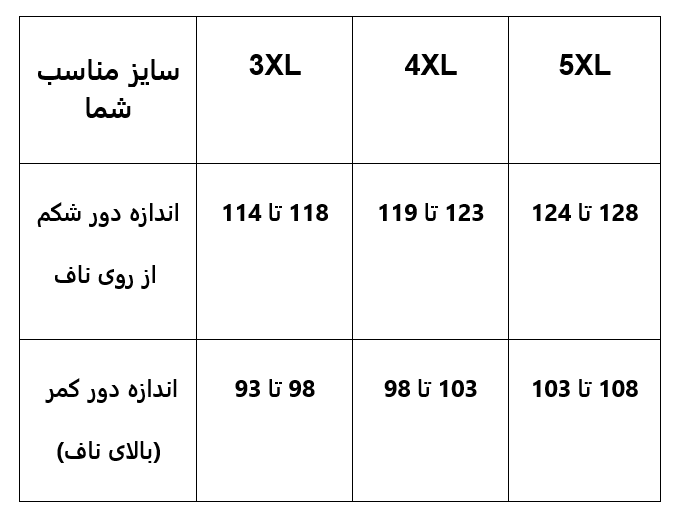 محدوده سایز از58 تا 32